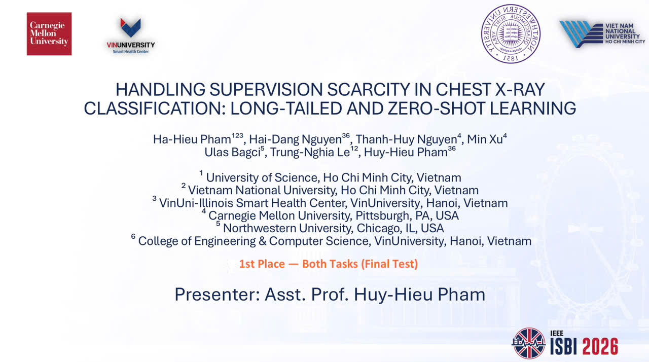 VISHC is delighted to celebrate a new academic achievement by Nguyen Trong Duc, a PhD student in Computer Science at VinUniversity, who received the Best Paper Award at IEEE ISBI 2026 in London, United Kingdom.